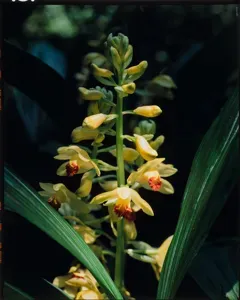 Phaius flavus is a terrestrial orchid species known for its striking yellow flowers and spotted foliage, native to Asia.