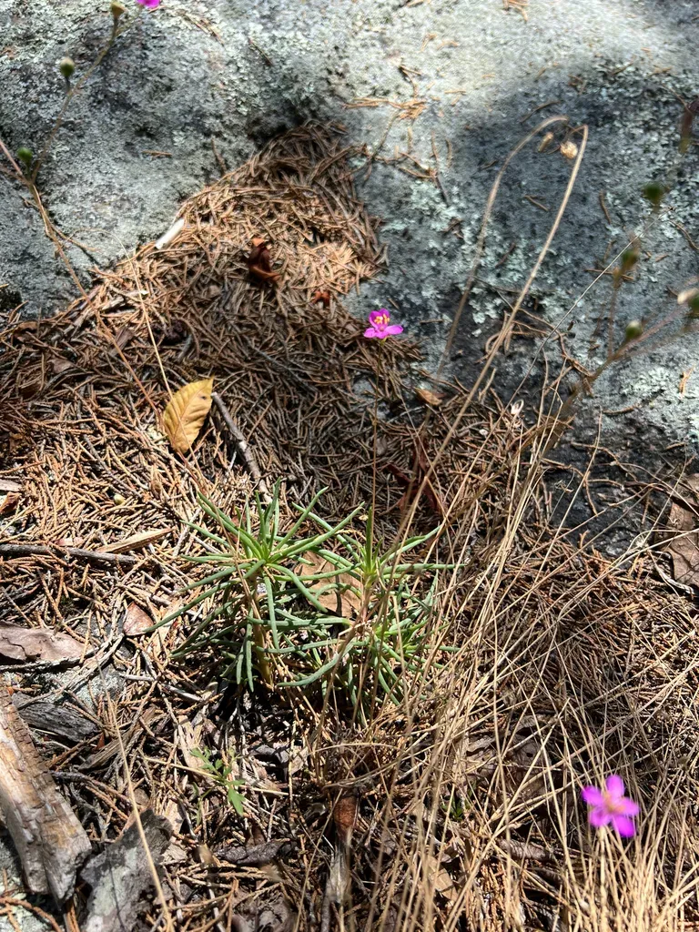 A perennial herbaceous plant native to the southeastern United States, known for its succulent, cylindrical leaves and vibrant pink flowers that bloom in summer.