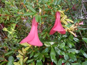 Philesia magellanica is an evergreen shrub native to the temperate rainforests of southern Chile and Argentina, known for its spectacular bell-shaped flowers.