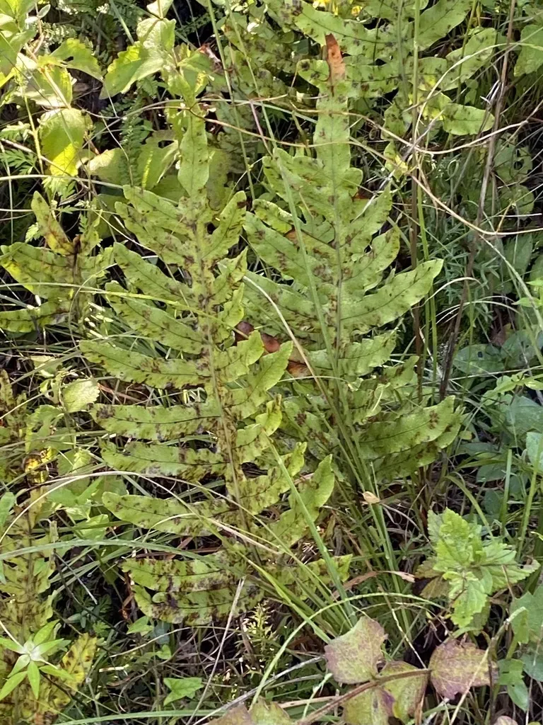 An evergreen or semi-evergreen fern with distinctive blue-green, glaucous foliage.
