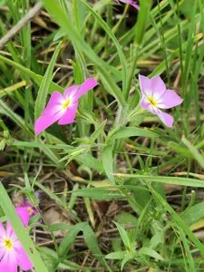 Phlox roemeriana, known as goldeneye phlox, is a species of flowering plant in the Polemoniaceae family native to Texas, characterized by pink to purple flowers with a tubular corolla.