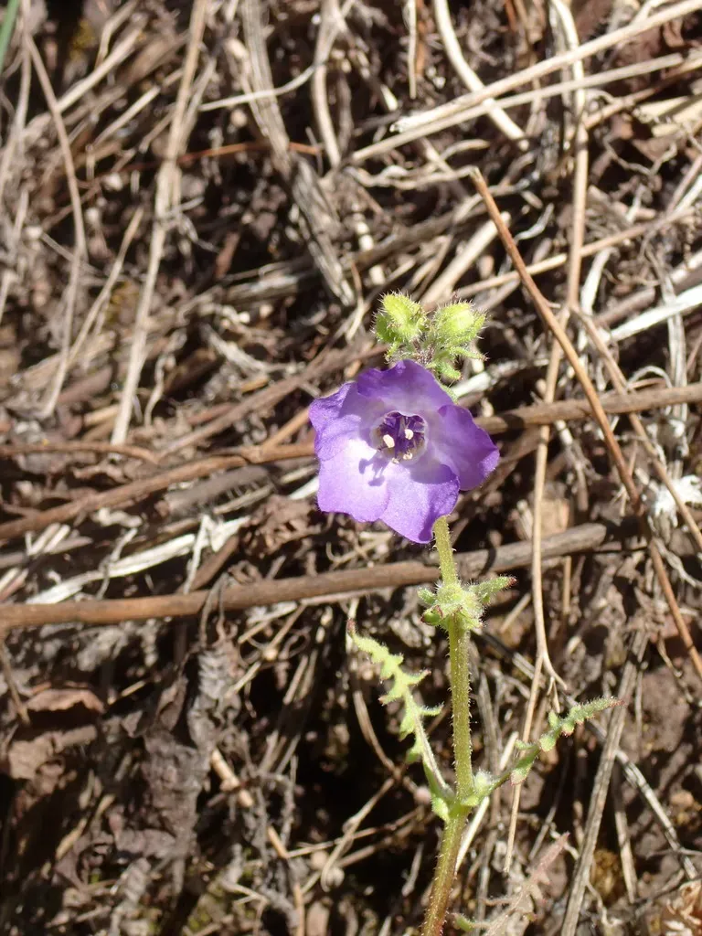 Pholistoma auritum is an annual herbaceous vine native to California and western North America, known for its sprawling, branching habit and blue to pale blue flowers with deeper blotches in the corolla throat.