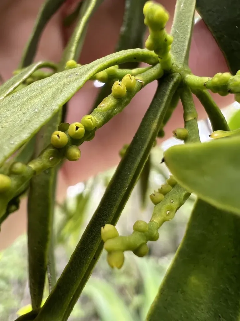 Quacimmila De Canario (Phoradendron Quadrangulare) is a plant in the Santalaceae family with moderate care difficulty. It requires moderate watering and moderate light.