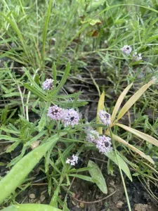 Phyla cuneifolia is a perennial herb or subshrub with trailing stems that root at the nodes, commonly found in gravelly soils near streams and playas.
