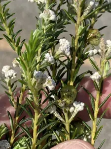 Fuzzball Hardleaf (Phylica Cryptandroides) is a plant in the Rhamnaceae family with moderate care difficulty. It requires moderate watering and moderate light.