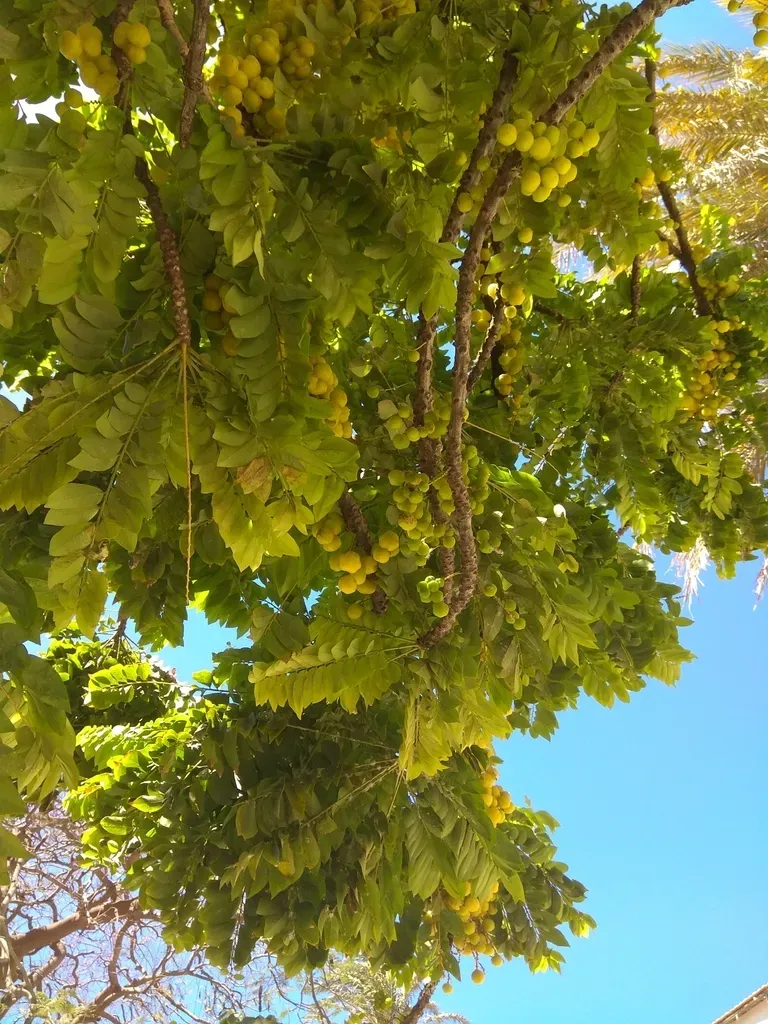 Phyllanthus acidus is a small deciduous tree known for its edible sour yellow berries and distinctive spreading crown.