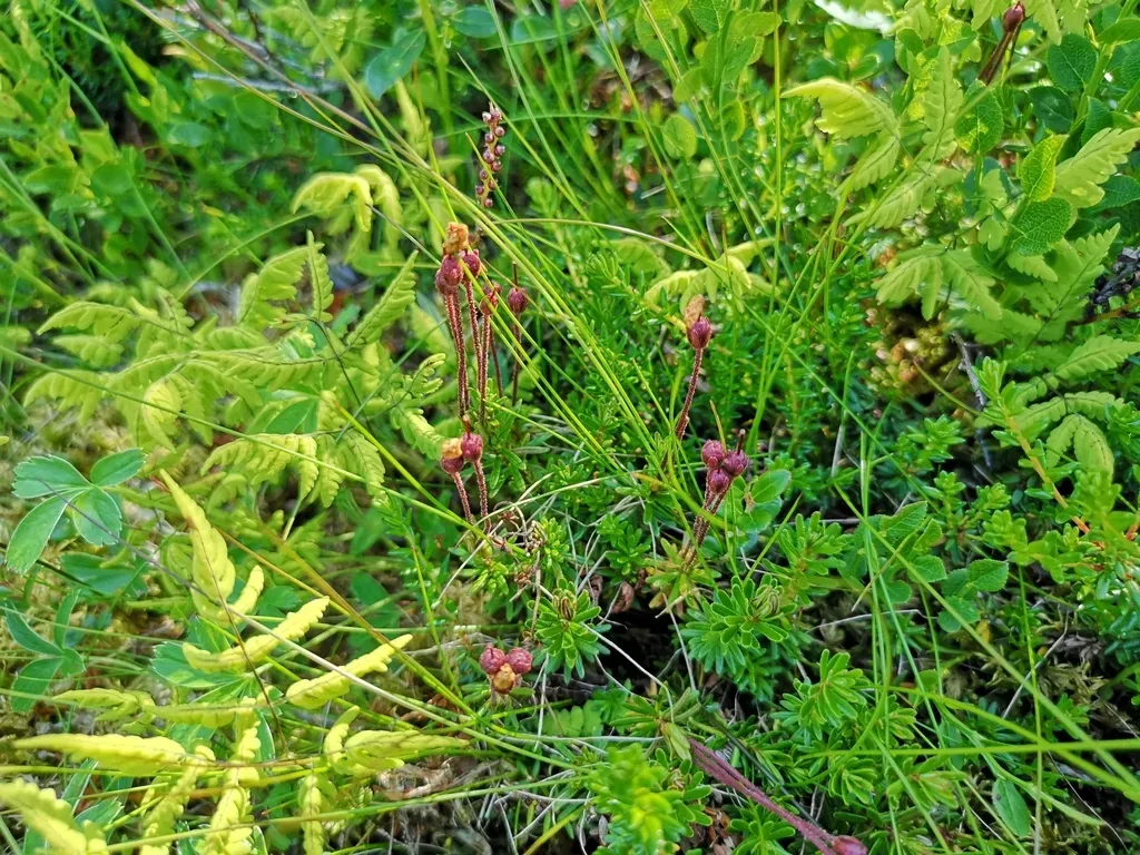 Phyllodoce caerulea is a small evergreen shrub known for its needle-shaped leaves and bell-like, nodding pink flowers.