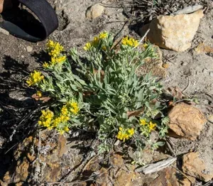 Physaria vitulifera is a perennial herb native to North America, characterized by several stems arising from the base, with decumbent to ascending growth habit and distinctive fiddle-shaped basal leaves.