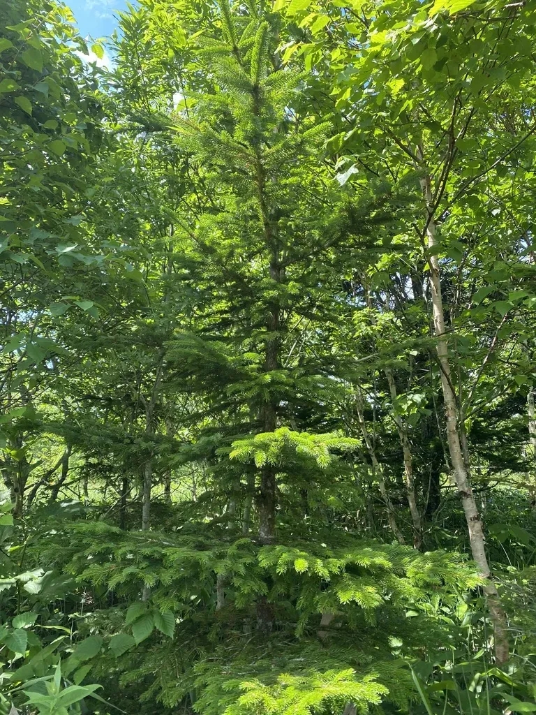 Picea jezoensis is a large evergreen conifer native to northeast Asia, known for its tall stature and grayish-brown bark.
