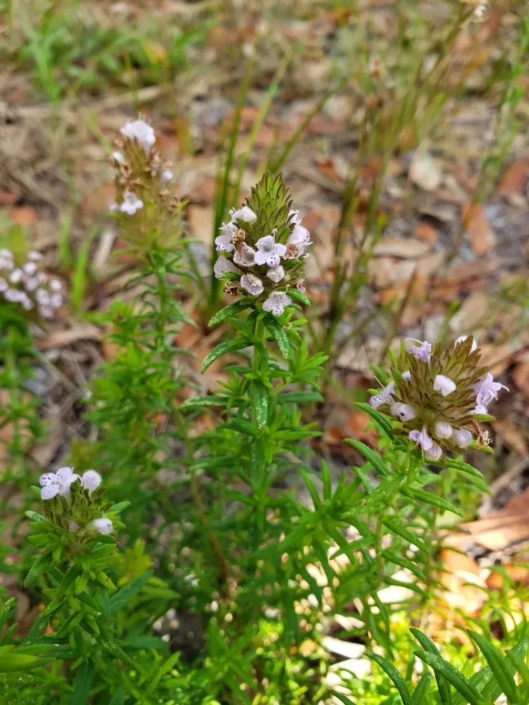 Piloblephis rigida is a low-growing, evergreen, herbaceous to semi-woody shrub native to Florida and parts of southeastern Georgia.