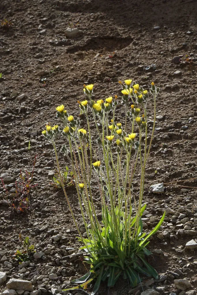 Pilosella piloselloides is a perennial forb native to Europe, characterized by erect stems, basal rosettes of leaves, and clusters of yellow dandelion-like flowers.