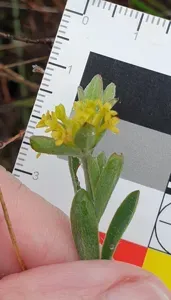 Pimelea curviflora is a small, hairy shrub endemic to Australia, known for its clusters of dark red to yellow flowers.