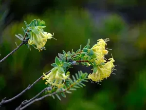 Pimelea suaveolens is a slender, erect shrub native to southwestern Australia, known for its large, hairy yellow inflorescences and distinctive fragrance.