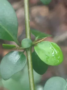 Pisonia aculeata is a large, evergreen climbing shrub or vine known for its long climbing stems and hooked thorns.