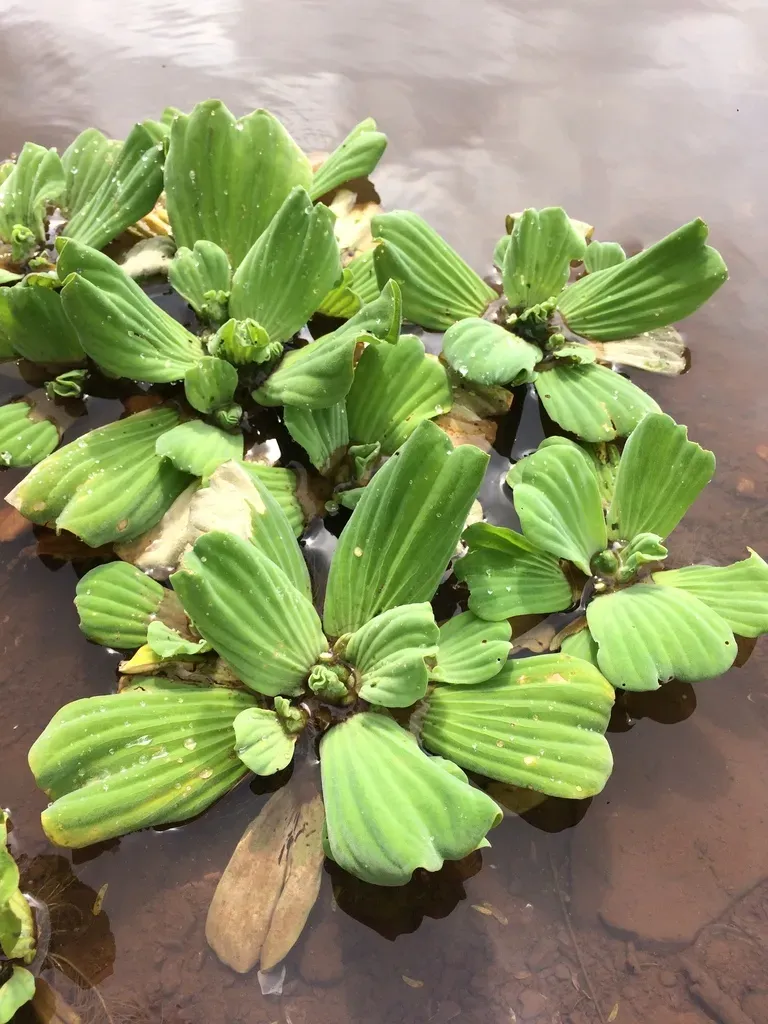Pistia stratiotes is a free-floating, aquatic perennial plant with rosettes of soft, velvety leaves that resemble lettuce.
