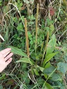 Plantago subnuda is a perennial herb native to western North America, known for its tall seed stalks and bold foliage.
