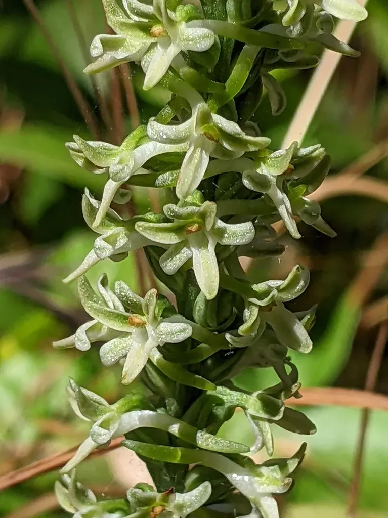 Flat Spurred Piperia (Platanthera Transversa) is a perennial herb in the Orchidaceae family with moderate care difficulty. It requires moderate watering and partial shade or dappled_shade light in USDA hardiness zones 6-9. This plant is safe for cats and dogs.