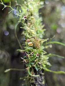 Platystele Alucitae (Platystele Alucitae) is a plant in the Orchidaceae family with moderate care difficulty. It requires moderate watering and moderate light.