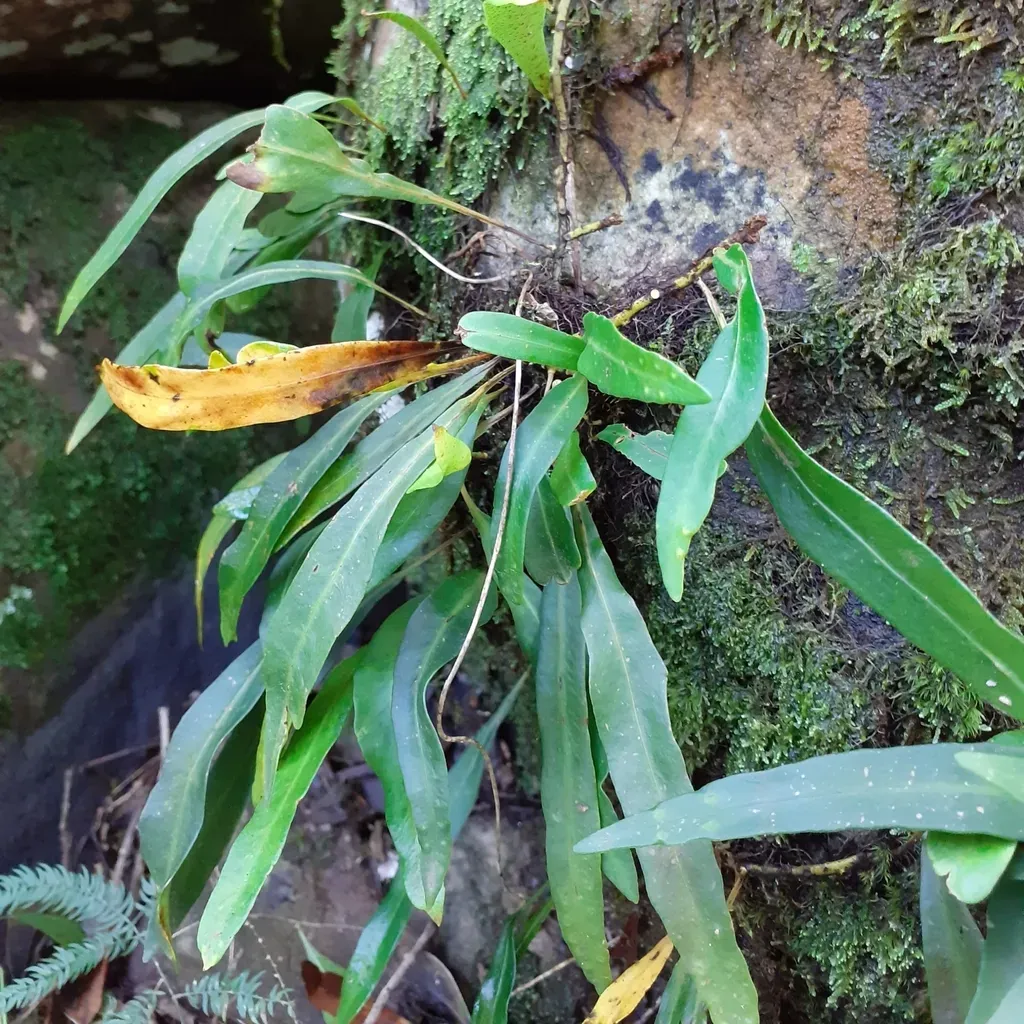 Pleopeltis macrocarpa is a perennial fern species characterized by a widely creeping, slender rhizome and narrowly elliptic fronds.