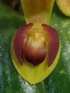 Pleurothallis cordata is a species of orchid known for its heart-shaped leaves and small flowers, native to western South America to Venezuela.