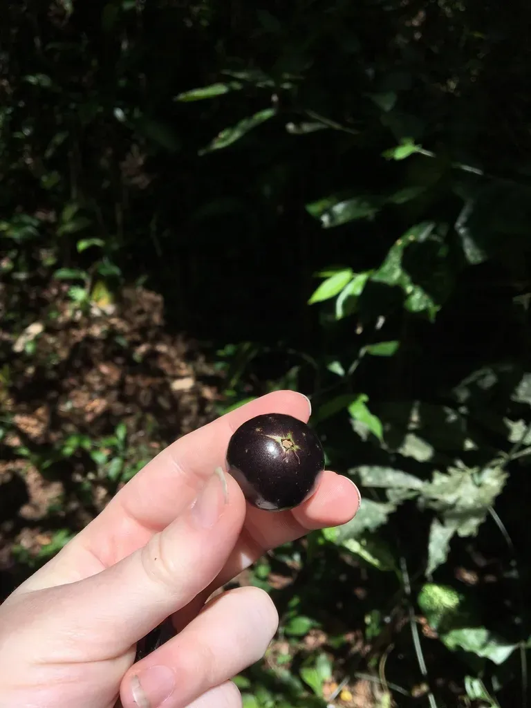 Plinia cauliflora is a tropical evergreen shrub or small tree known for its unique fruiting habit where dark purple, grape-like fruits grow directly on the trunk.