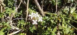 Stinking Madder (Plocama Calabrica) is a perennial shrub in the Rubiaceae family with moderate care difficulty. It requires drought-tolerant watering and full sun or partial shade light in USDA hardiness zones 7-10. This plant is safe for cats and dogs.