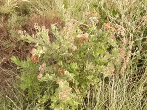 Pluchea salicifolia is a shrub or subshrub native to Mexico and Guatemala, recognized by its willow-like leaves and clusters of small pinkish-purple flowers.