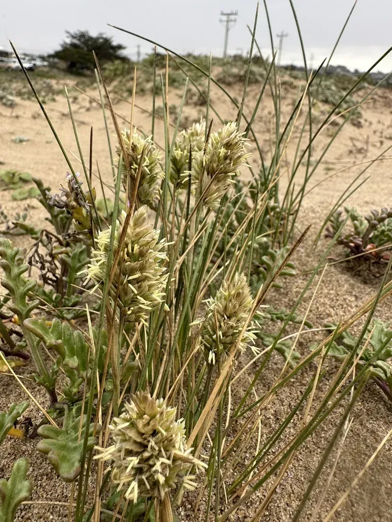 Poa douglasii is a perennial grass native and endemic to the coastal sand dunes of California, notable for its dense clumps and rhizomatous growth.