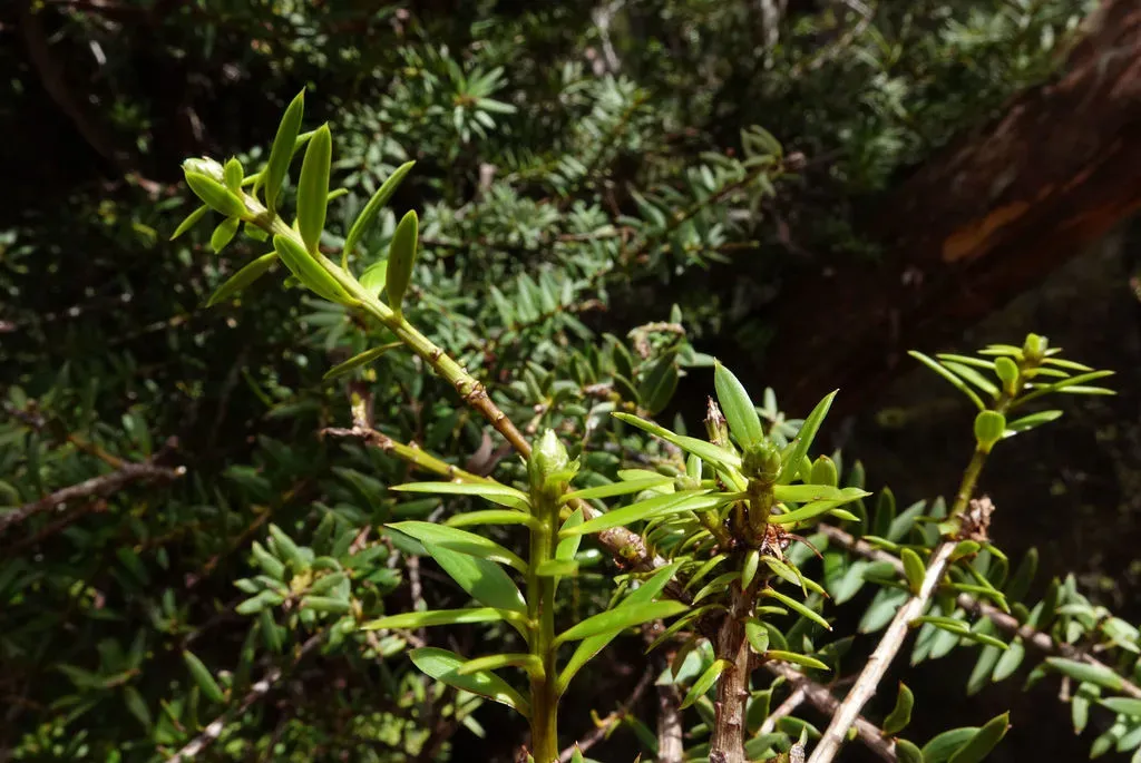 Podocarpus laetus is a robust dioecious conifer native to New Zealand, growing up to 20 meters tall with thin, papery bark and slender branchlets.