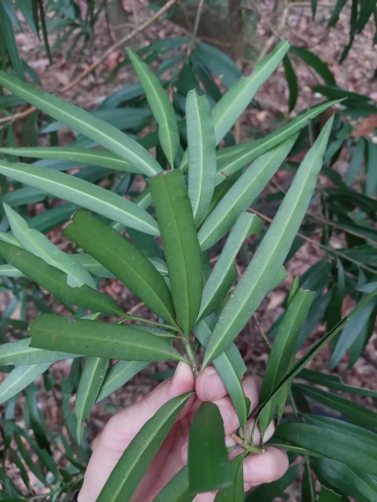 Podocarpus nakaii is a medium to large tree native to Taiwan, known for its distinctive bark and evergreen foliage.