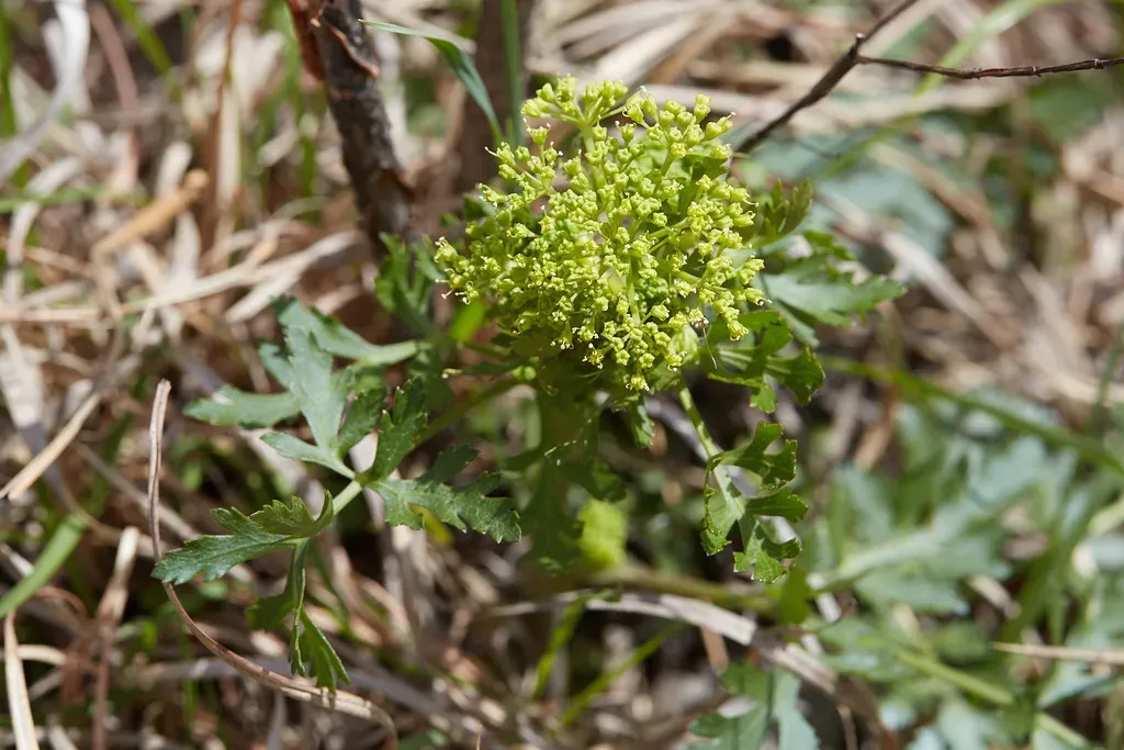 Polytaenia nuttallii, commonly known as Prairie Parsley, is a biennial herb native to North American prairies, recognized for its yellow umbels of flowers and compound leaves.