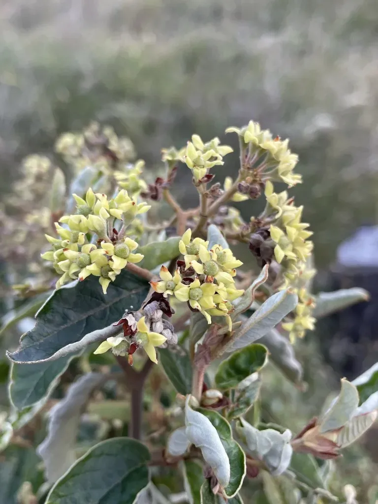 Yellow Dogwood (Pomaderris Elliptica) is a perennial shrub in the Rhamnaceae family with easy care difficulty. It requires moderate watering and full sun or partial shade light in USDA hardiness zones 8-11. This plant is safe for cats and dogs.