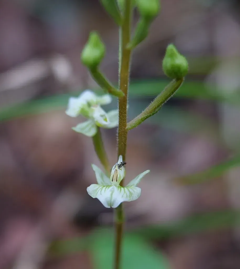 Ponthieva racemosa is a terrestrial orchid native to the southeastern United States, Mexico, Central and South America, known for its basal rosette of leaves and white to greenish flowers appearing in fall through winter.