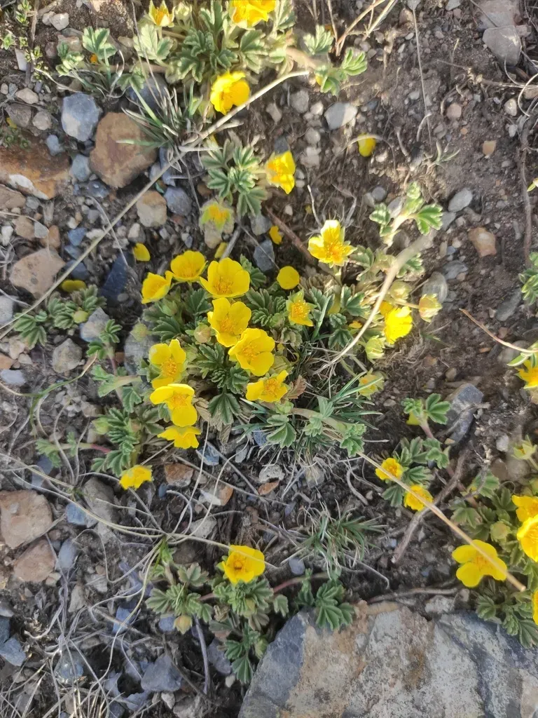 Potentilla acaulis is a perennial herbaceous plant native to Central Asia, Siberia, and Northern China, known for its low-growing, tufted habit and yellow flowers.