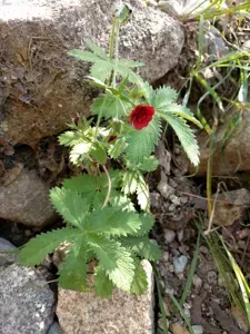 Scarlet Cinquefoil (Potentilla Thurberi) is a perennial herb in the Rosaceae family with easy care difficulty. It requires moderate watering and full sun or partial shade light in USDA hardiness zones 5-9. This plant is safe for cats and dogs.