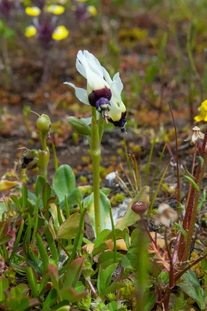 Primula clevelandii is a perennial herb native to California, known for its glandular-hairy stems and magenta to deep lavender flowers.