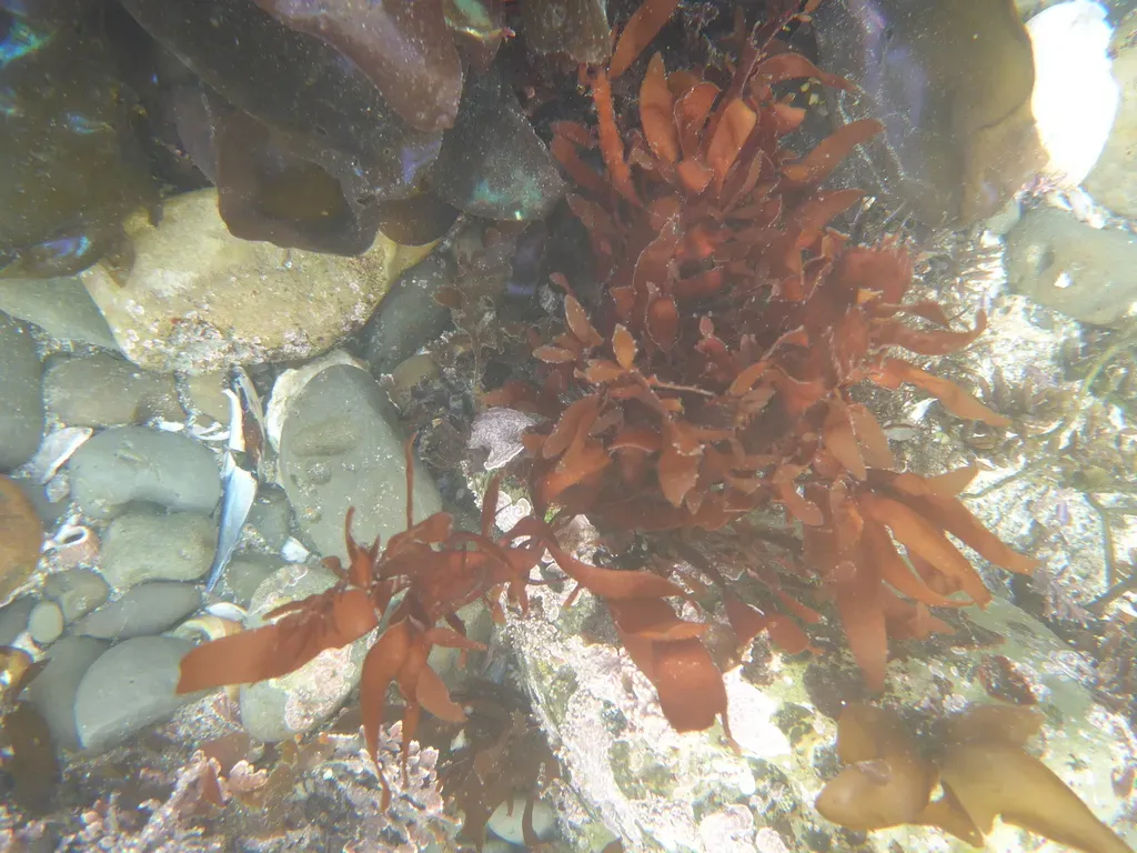 Prionitis lanceolata is a species of red marine algae characterized by lance-shaped fronds, typically reddish-brown to bright red or purple in color.