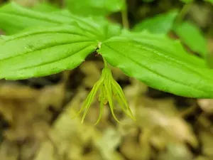 Prosartes lanuginosa is a perennial herbaceous plant in the lily family known for its elegant branching and yellow bell-shaped flowers.