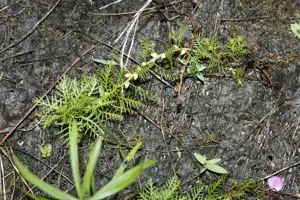 Proserpinaca pectinata is a perennial aquatic herb known for its pinnately lobed submerged leaves with 7–12 pairs of divisions.