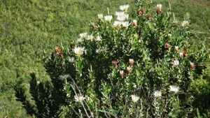 Shuttlecock Sugarbush (Protea Aurea) is a plant in the Proteaceae family with moderate care difficulty. It requires moderate watering and moderate light.