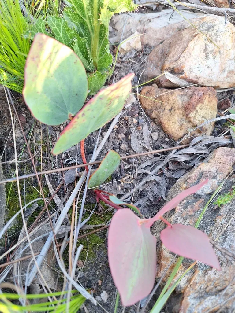 Protea cordata is a low-growing shrublet native to Southern Africa, known for its heart-shaped leaves and red-flushed stems.
