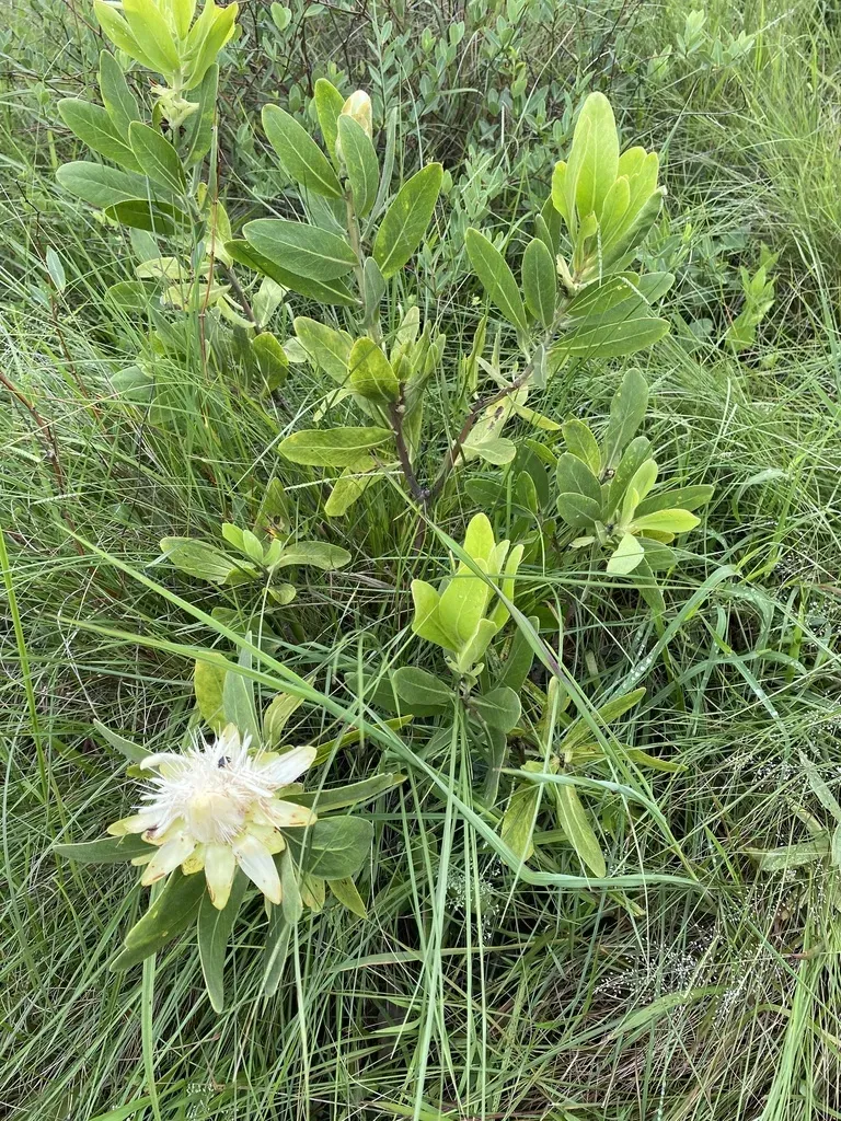 Dwarf Savanna Sugarbush (Protea Welwitschii) is a perennial shrub in the Proteaceae family with moderate care difficulty. It requires moderate watering and full sun or partial shade light in USDA hardiness zones 9-11. This plant is safe for cats and dogs.