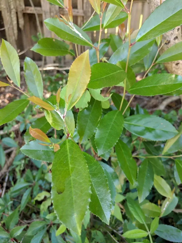 Carolina Cherry-laurel (Prunus Caroliniana) is a perennial tree in the Rosaceae family with easy care difficulty. It requires moderate watering and full sun or partial shade light in USDA hardiness zones 7-10. This plant is toxic to cats and dogs — keep it out of reach of pets. It can be grown indoors.