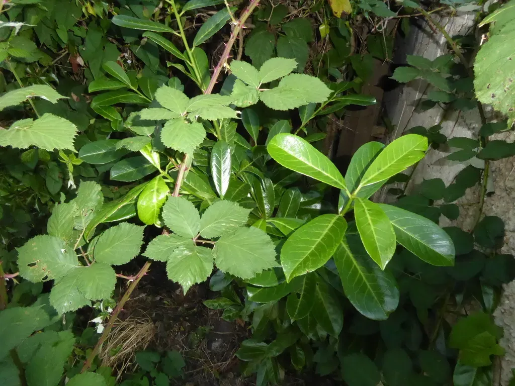 A vigorous, evergreen shrub or small tree with glossy, leathery leaves and spikes of white flowers in spring, followed by black berries.