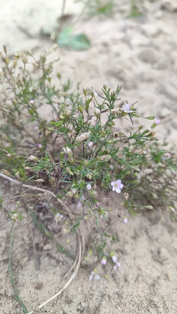 A compact, bushy annual forming a mound of slender, heavily-branched, wiry stems bearing linear to lance-shaped leaves up to 2.5 cm long.
