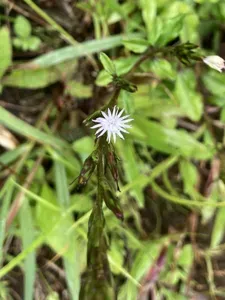 Pseudelephantopus spicatus is a herbaceous plant native to tropical areas of Mesoamerica, South America, and the West Indies, characterized by erect, branched stems and variable leaf sizes.