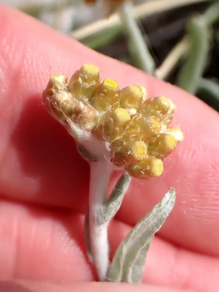 Woolly Cudweed (Pseudognaphalium Lanatum) is a annual herb in the Asteraceae family with easy care difficulty. It requires low watering and full sun or partial shade light in USDA hardiness zones 8-11. This plant is safe for cats and dogs.