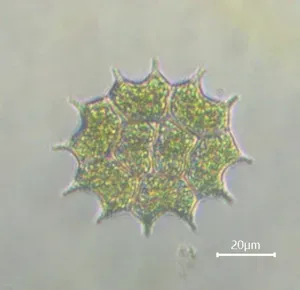 Pseudopediastrum boryanum is a species of green microalgae belonging to the family Hydrodictyaceae, commonly found in freshwater environments worldwide.