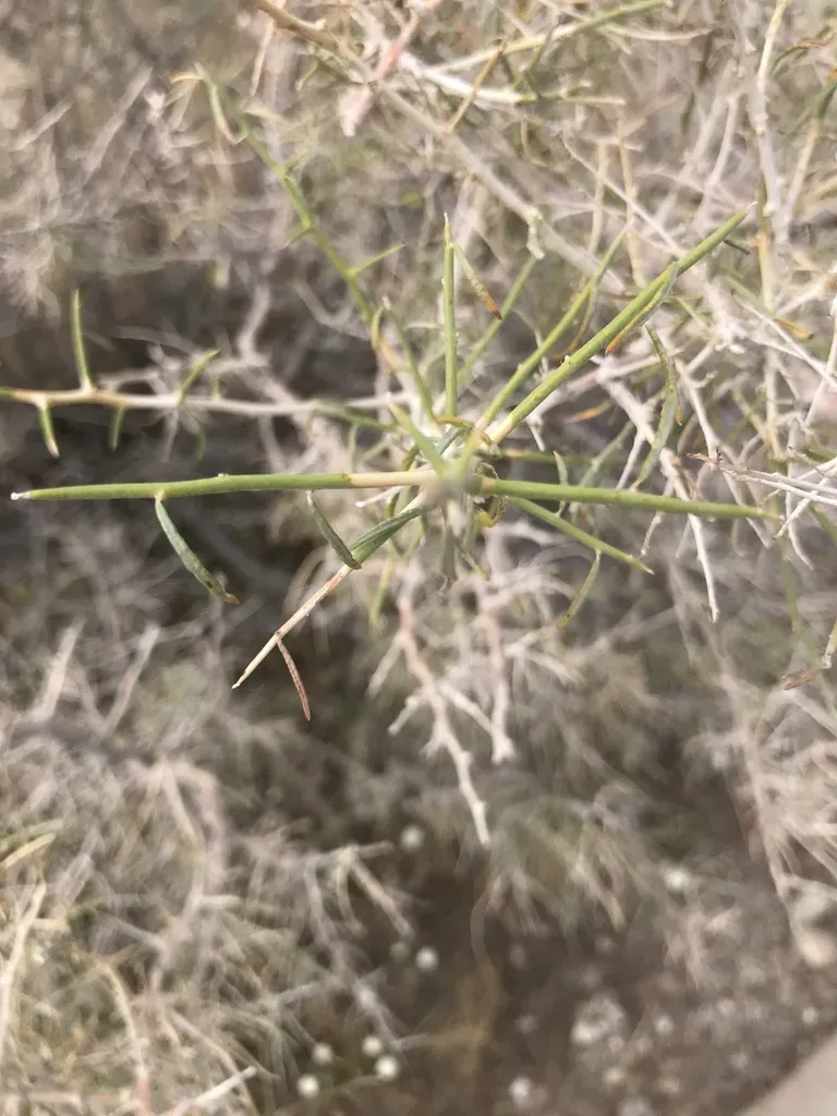 Psorothamnus schottii is a shrub native to the southwestern United States, known for its highly branching stems and deep purple flowers.