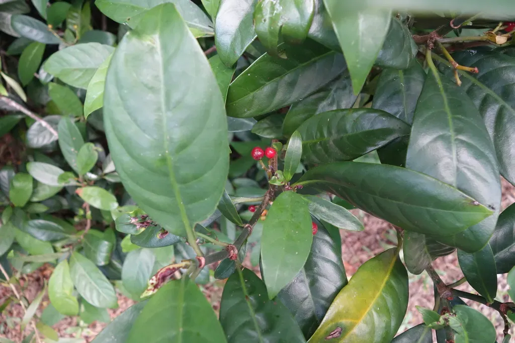 Psychotria asiatica is a shade-loving tropical shrub native to Asia, known for its red berries resembling coffee fruits.